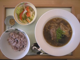 人気メニューの「鶏肉の薬膳スープ」(600円)は「医と食の源は同じ」・・・そんな医食同源の思想の基に作ったスープです。生姜、高麗人参エキスパウダーなど、美容効果が期待できそうな食材を使用しています。「バクテー」(600円)は、中国人がマレーシアに伝えたとされる、骨付き豚肉をたっぷりのスパイスで煮込んだスープ。スパイスと紹興酒、醤油の素朴で奥行きのある味わいです。オススメのスープセットは、ドリンク、ミニサラダ、デザート、パンまたはライスが付き、かなりボリュームがあります(パンのセット1050円、ライスのセット1000円)。