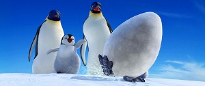 南極大陸の冬。皇帝ペンギンの国で卵がいっせいに孵り始める季節。そのなかでいちばん最後に、くちばしからではなく、なんと足から生まれてきたのがマンブルだ。パタパタと足を動かす息子のクセを、母親は“マンブルらしい”と可愛く思い、父親のメンフィスは“ペンギンらしくない”と不安に思った。ペンギン小学校にあがると、彼らにとっていちばん大事な“心の歌”の授業中、彼の致命的な歌声が発覚! 何とか矯正を試みるもののうまくいかない。マンブルは「心」を伝えようとすると、歌よりも”足”が勝手に動き出してしまうのだ。落第が決まった卒業式の夜、ひとりぼっちで踊っていたマンブルは、気がつけば流氷の上・・・。これから待ち受ける冒険は、彼にとって最良の方向へと進んでいくのでしょうか?!