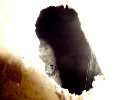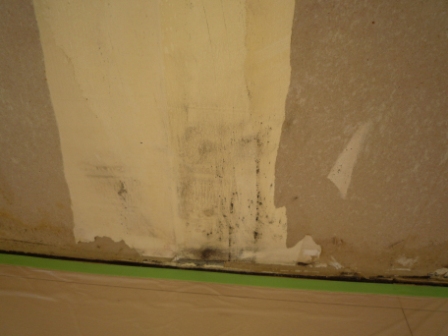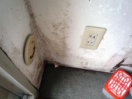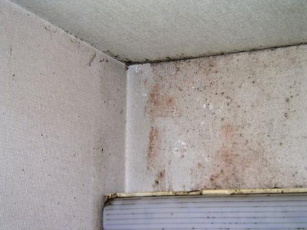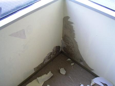 漏水現場のカビです。壁紙を剥した際にありました。 ススの様なカビで、なかなか取り切れませんでした。このカビでお客様は呼吸器系の病気になってしまいました。 わずかなカビでも病気になるのです。知っておいて損はしません。
