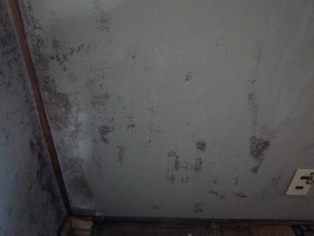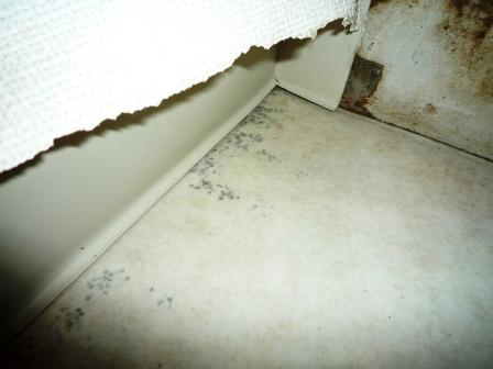 ■“コンクリート下地”と“結露”によるカビB 大きな家具を移動させると家具にはカビが!しかも壁はコンクリートに直接壁紙を貼り付けているので、断熱などはありません!断熱が無いから寒く“結露”も酷い。