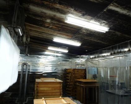 食品工場(作業所)の天井を見て下さい。黒く見えるのは全てカビです。何度も塗装したりカビ取りを続ける様なコストを かけるよりプレモの防カビ施工ならカビを長期間止め続ける事が出来ます!食品衛生上、食品工場に防カビ施工は不可欠です。