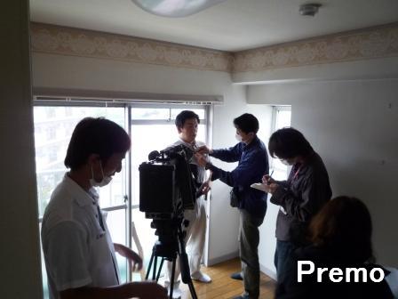 日本テレビから取材を受け「ズームイン!!SUPER」で放送されました。カビ取り作業の取材を受けている写真です。