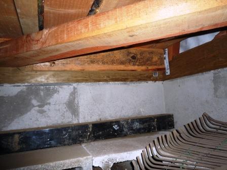基礎は布基礎=土が剥き出し状態。家を建てて10年も経過していないのに土台部の木材に黒カビが発生しています。 早めの防カビが家の土台を救います。